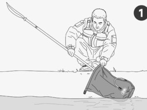 Nach dem Wasser- bzw. Luftablassen kann die Fussstütze zusammen mit dem Boot kompakt zusammengerollt werden.