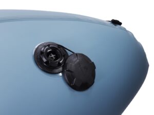 Anstelle eines klassischen Sitzes verfügt das Nirvana Self-Bailing über einen integrierten, aufblasbaren Boden mit Sitzfunktion. Dieser dicke Boden sorgt für den nötigen Auftrieb, damit du über dem Wasserspiegel sitzt, während das Wasser durch die Lenzlöcher unter dir abfliesst. Diese Konstruktion versteift das Boot zusätzlich und verbessert die Fahreigenschaften.