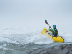 Das Nirvana ist aus widerstandsfähigem 210d TPU-Nylon (Seitenwände) und verstärktem 840d TPU-Nylon (Boden) gefertigt, um Felskontakten standzuhalten. Da es sich um ein Self-Bailing-Boot handelt, wirst du beim Fahren nass – entsprechende Kleidung (Neopren oder Trockenanzug) wird für kältere Gewässer dringend empfohlen.