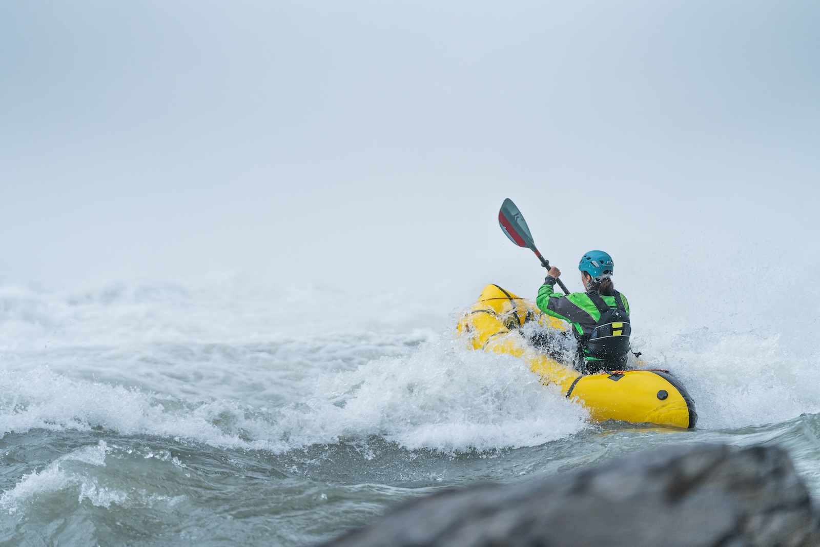 Dank des ausgeprägten "Rockers" (hochgezogener Bug und Heck) schluckt das Nirvana Wellen und Walzen mit Leichtigkeit und lässt sich agil steuern. Der grosse Vorteil des Self-Bailing-Systems liegt im einfachen Ein- und Aussteigen ("Scouting"), da du dich nicht mit einer Spritzdecke aufhalten musst. Es ist das perfekte Boot für technische Flüsse, heisse Sommertage im Wildwasser oder für alle, die das Handling eines Kajaks mit der Packbarkeit eines Packrafts verbinden wollen.