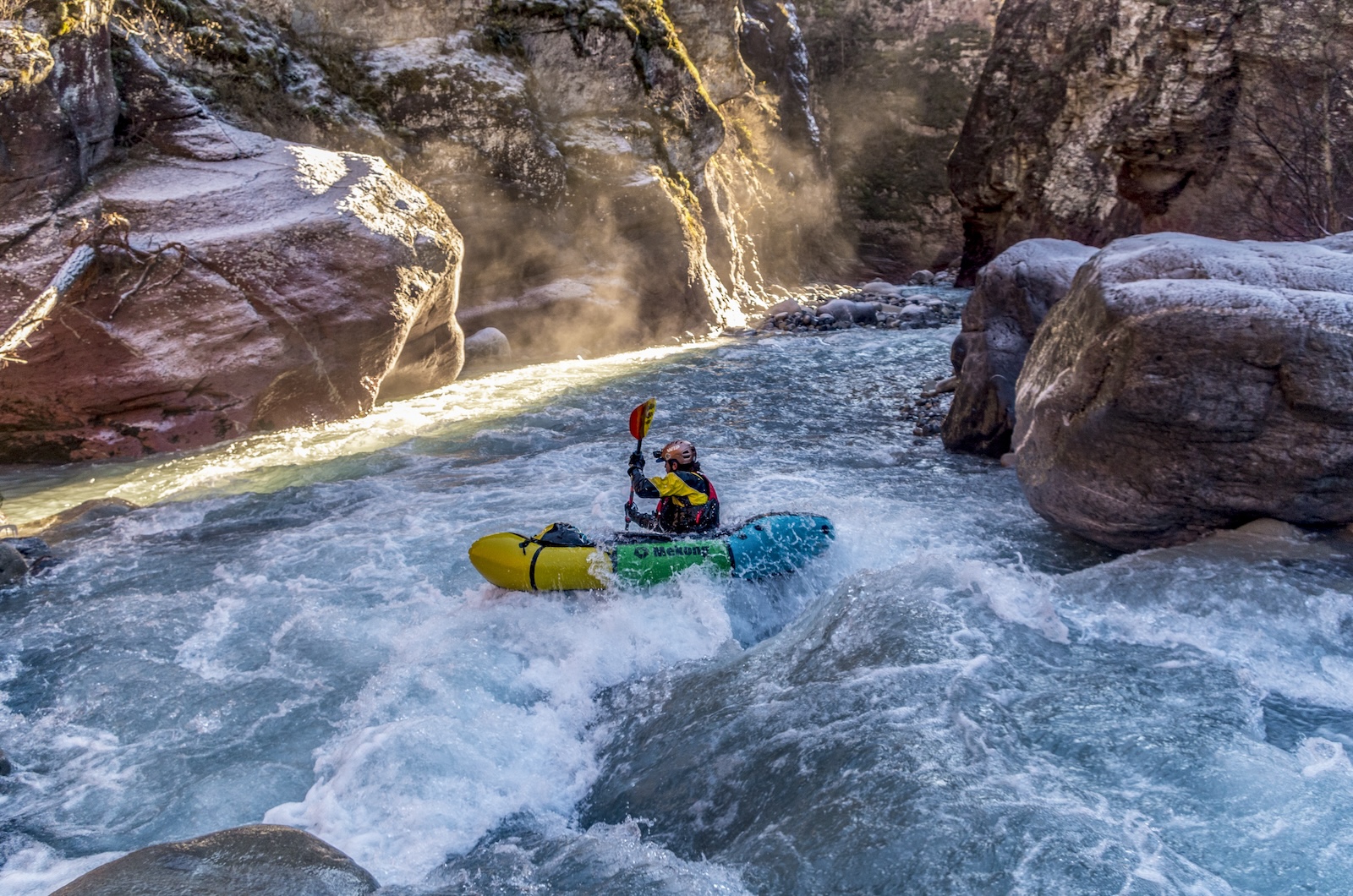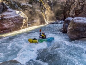 Pablo ist ultra-stabil, leicht und robust – dein idealer Begleiter vom Hausfluss bis ans Ende der Welt. Das Packraft eignet sich perfekt für Seen, ruhiges Meer und moderate Flüsse (Klasse II–III). Dank der komplett abnehmbaren Spritzdecke bleibst du bei jedem Wetter flexibel. Wähle die Grösse «Plus» für Paddler über 180 cm oder für extra Gepäck wie Velo und Hund.