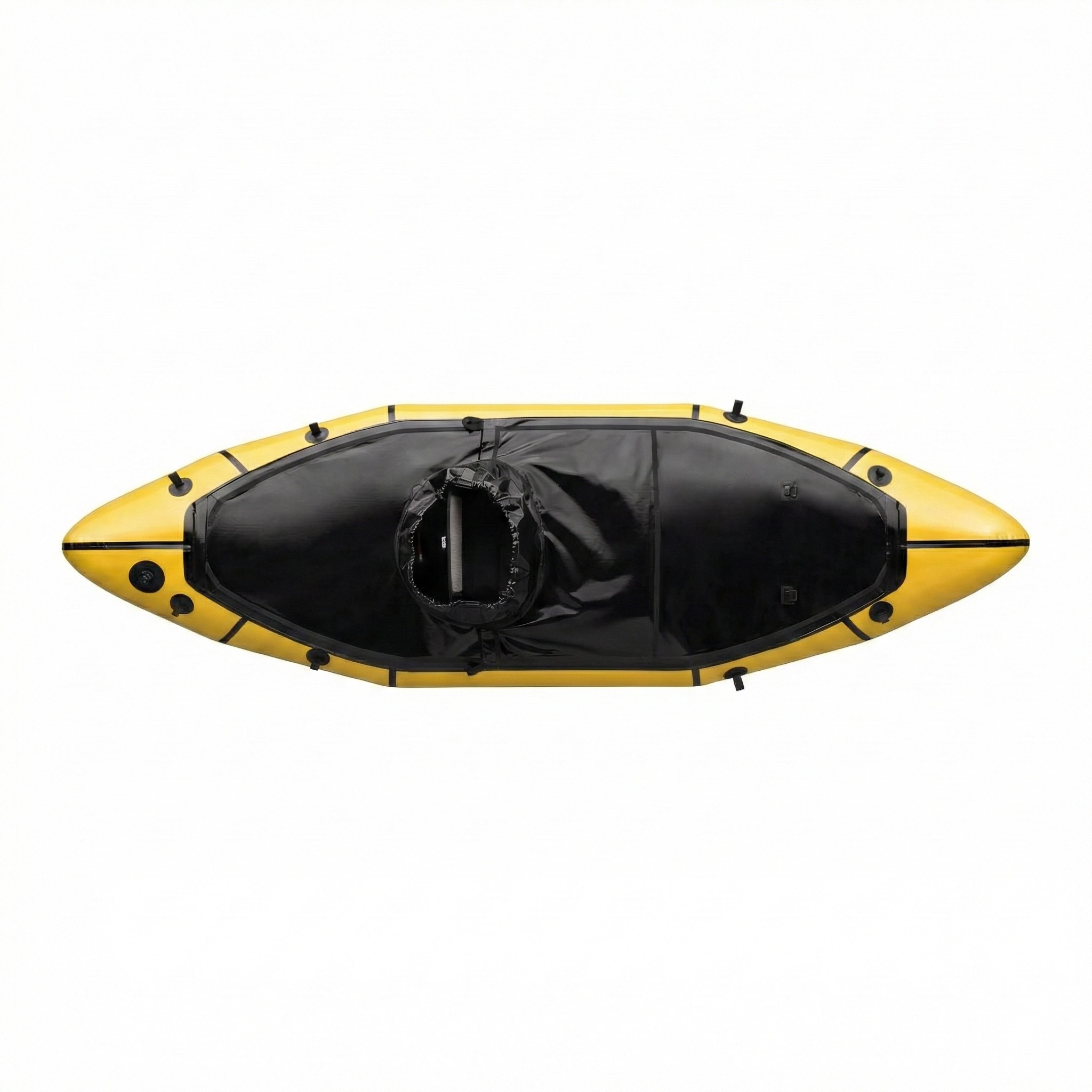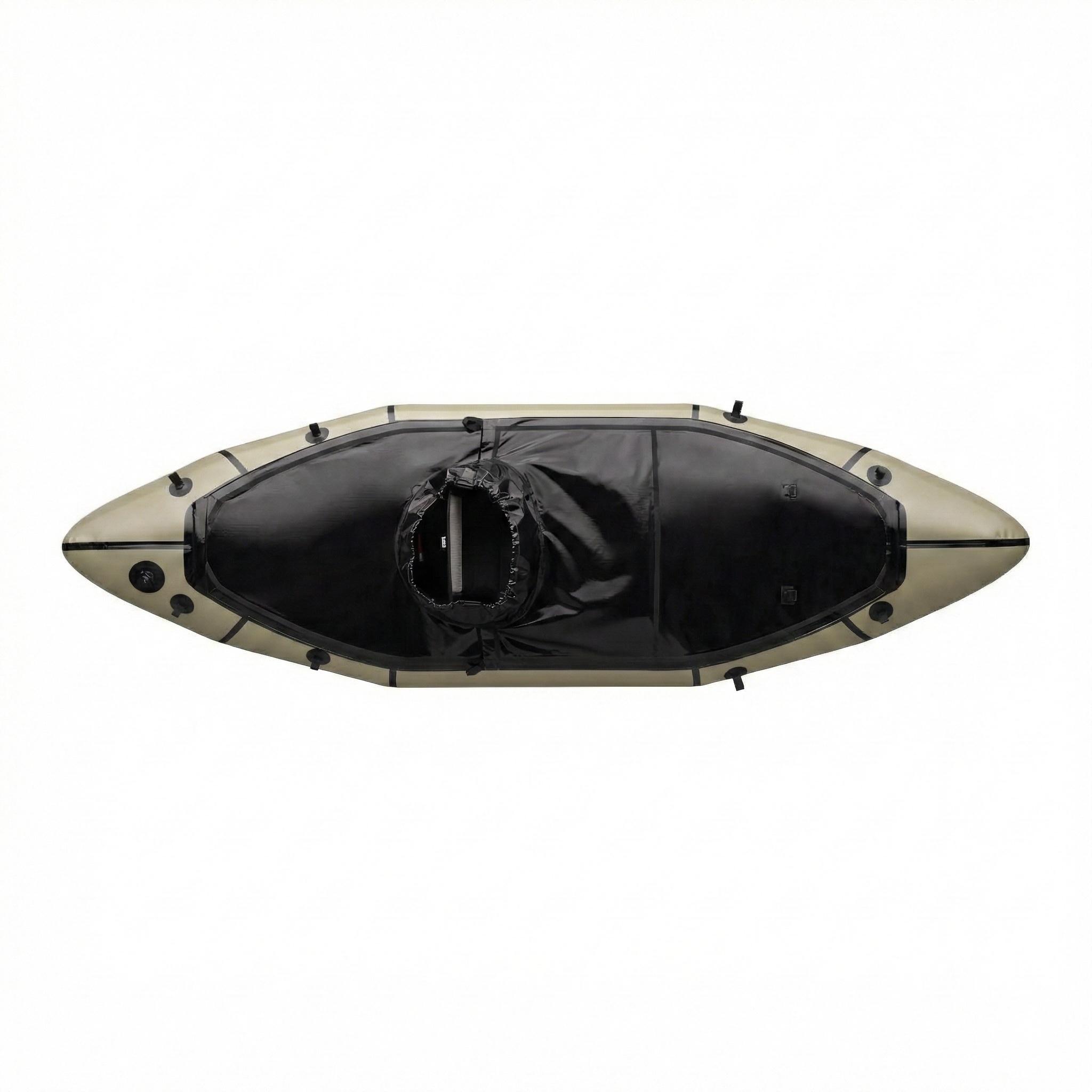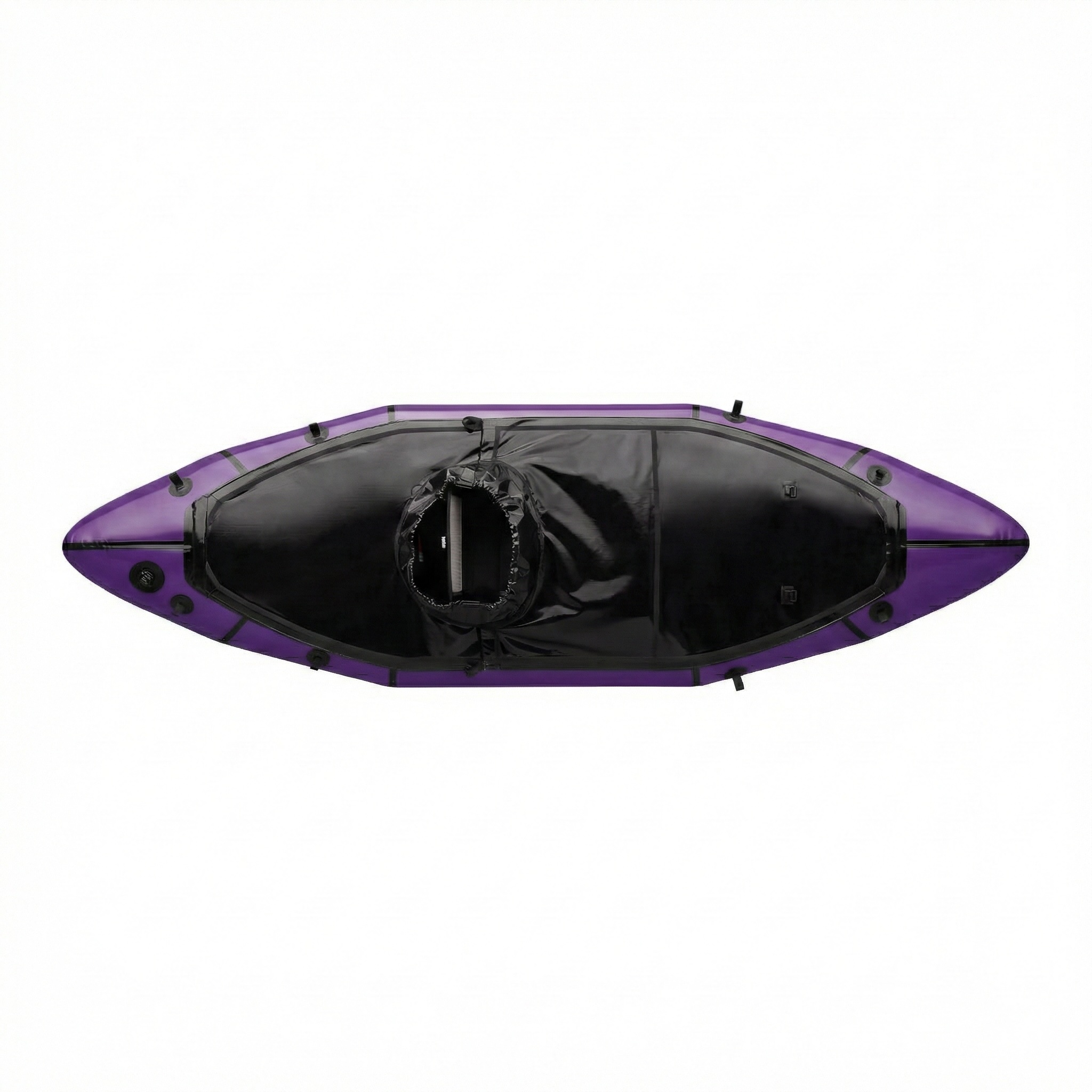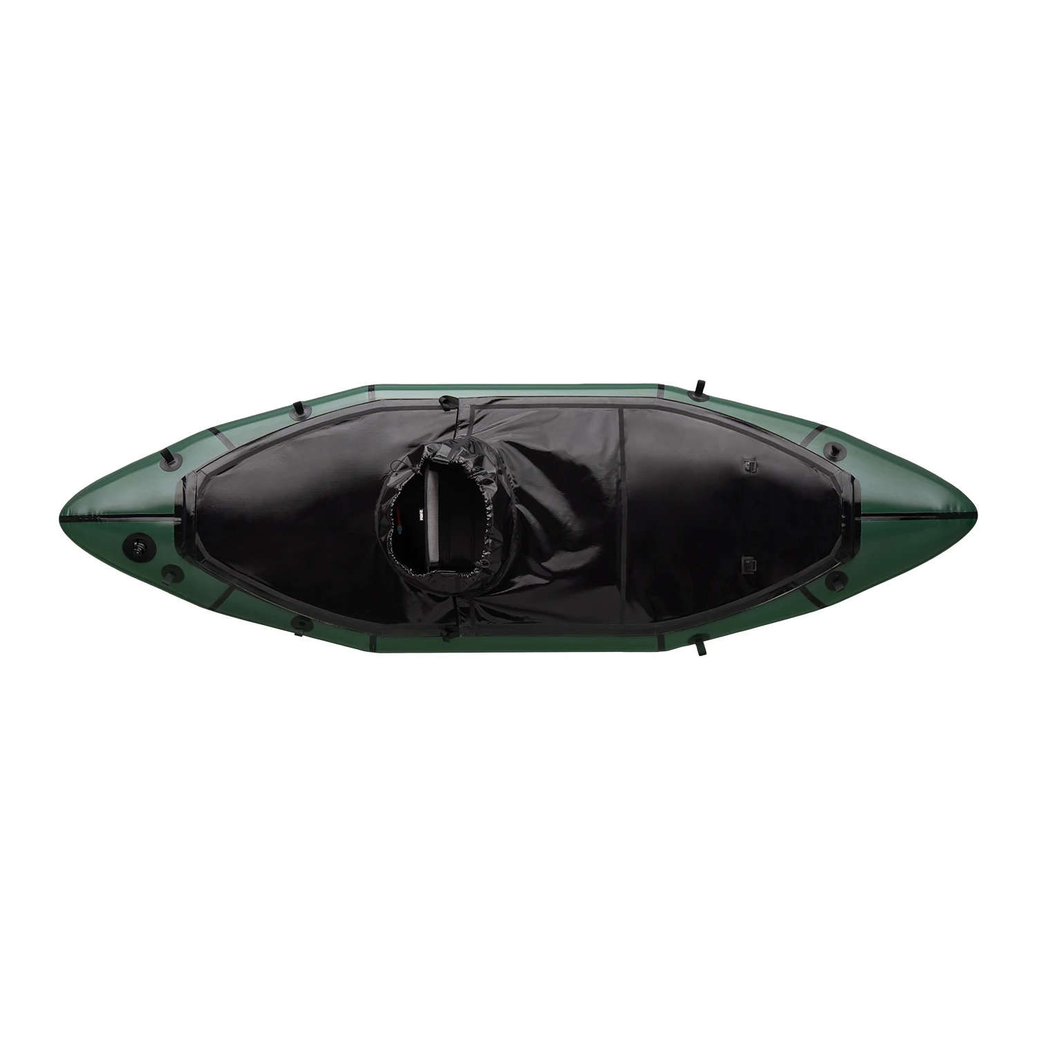 Aufgrund des schlanken Designs des Nomad S1E am Bug/Heck befinden sich die luft- und wasserdichten TiZip-Reissverschlüsse auf beiden Seiten in der Mitte des Packrafts (innen).
