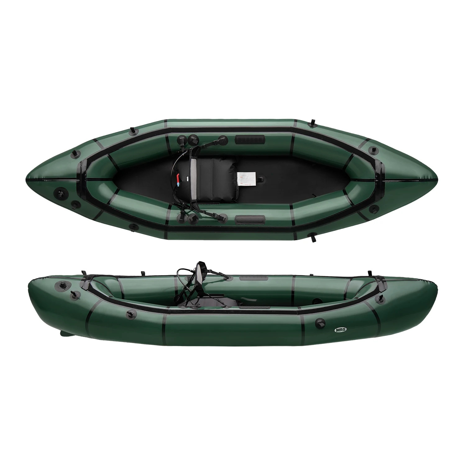 Optionale Schenkelgurte (MRS 3P Schenkelgurte) für Wildwasser, höhere Kraftübertragung oder seitliche Stabilisierung mit viel Gepäck auf Bug oder Heck sind ebenfalls erhältlich. Alle notwendigen Befestigungspunkte sind vorinstalliert.