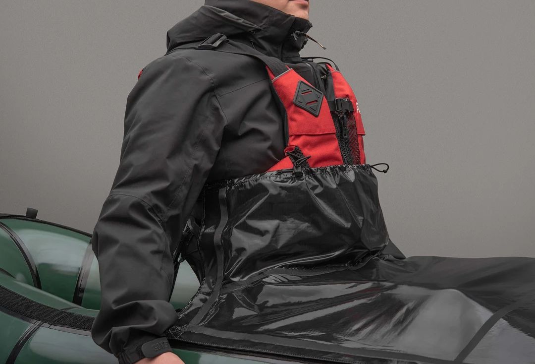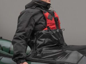 Bei warmen Temperaturen kannst du das hintere Verdeck abnehmen. Hake die Clips des Befestigungsriemens einfach an beiden Seiten deiner Schwimmweste ein und befestige die vordere Spritzdecke an den seitlichen Klettverschluss-Flächen des Riemens. Diese Konfiguration bietet dir eine verbesserte Belüftung, um einen Hitzestau zu reduzieren, während sie gleichzeitig verhindert, dass das meiste Spritzwasser ins Cockpit gelangt. Dieses neue Verbindungssystem wurde umfassend getestet und ermöglicht es dir, die Spritzdecke im Falle einer versehentlichen Kenterung über den Zuggriff blitzschnell zu lösen.